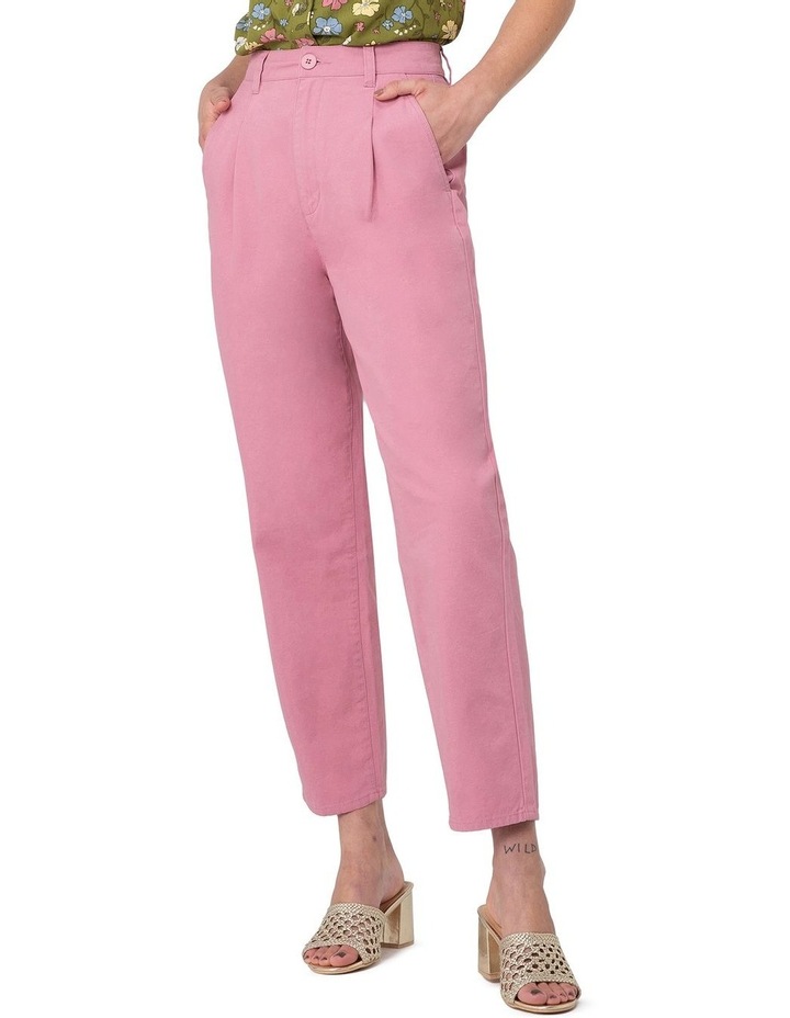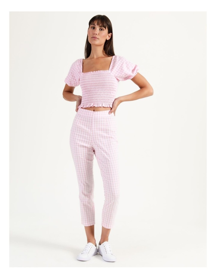 Cotton Linen High Waisted Cropped Leg Gingham Pant Pink/White